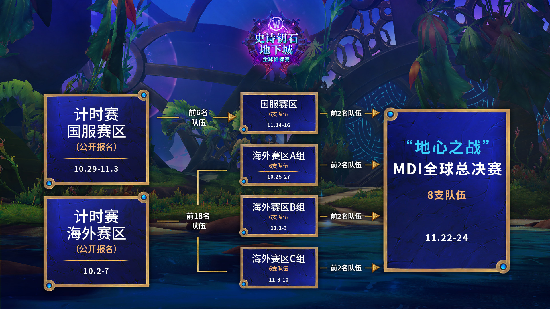 在国服赛区总决赛中,赛制将有所调整,参赛队伍将由八支调整为六支,并包含每日淘汰、新地下城和修改后的专精多样性规则。参赛队伍将会全力冲层,并争夺21万人民币的奖金,以及挺进MDI全球总决赛的名额。最终,国服赛区前两名的队伍将与海外赛区三个小组,总计六支队伍会师,在“地心之战”MDI全球总决赛中争夺总计30万美元的奖金,以及“地心之战”MDI全球总冠军的头衔!