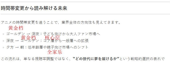 ·2000年以后,日本的动画市场时段发生重心偏移,深夜档逐渐备受重视,这意味着是面向孩子还是大人的群体偏重。