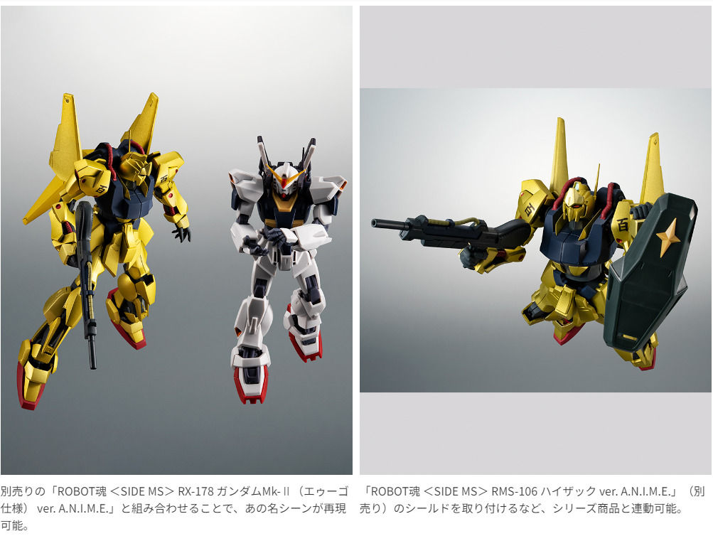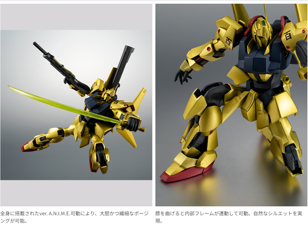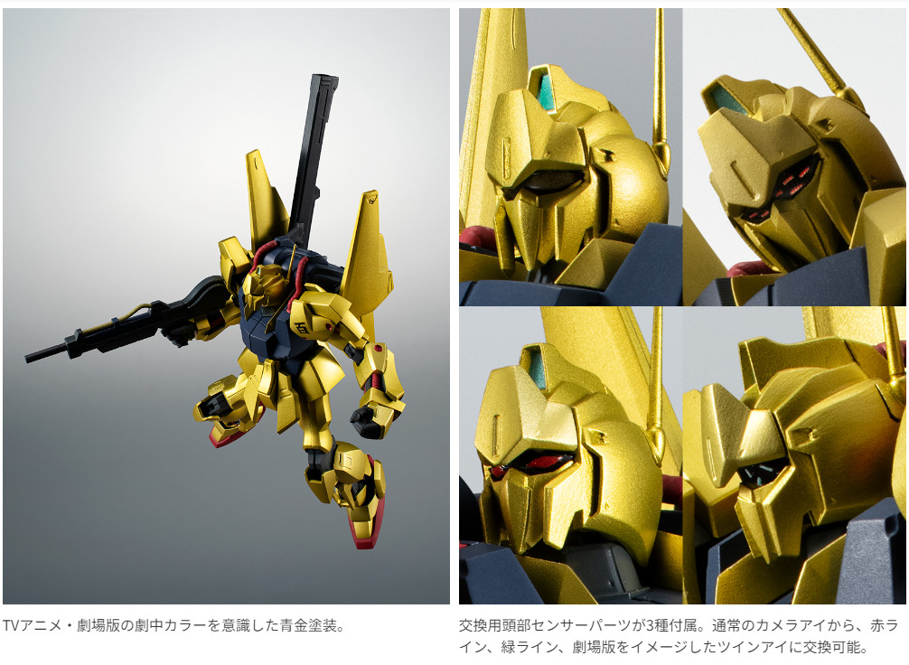 エゥーゴのエース、クワトロ・バジーナが駆る黄金の機体がver. A.N.I.M.E.に登場!特徴的な頭部センサーが4種付属し様々なシーンを再現可能。