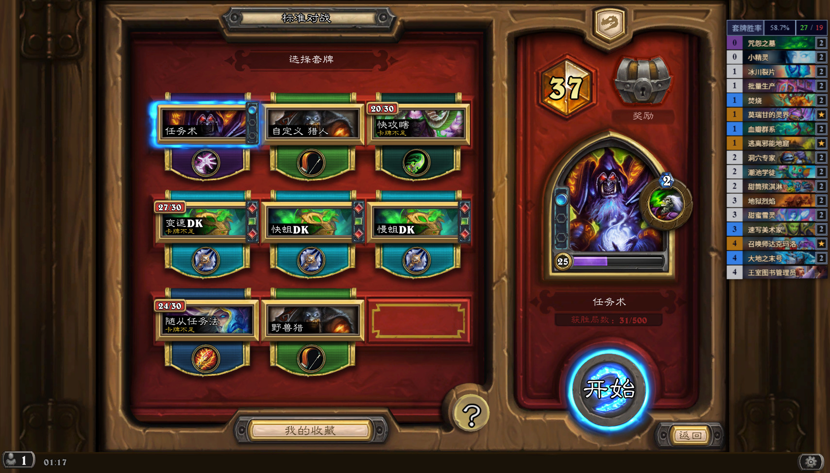 和其他主流任务术卡组大差不差,只是去掉了任务助理换成了两个焚烧。