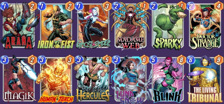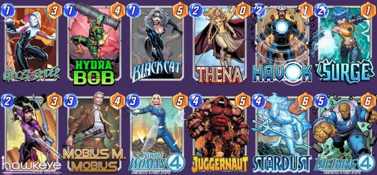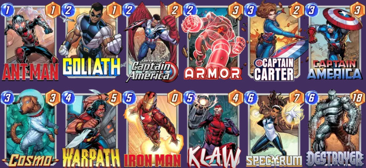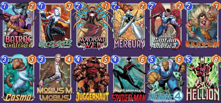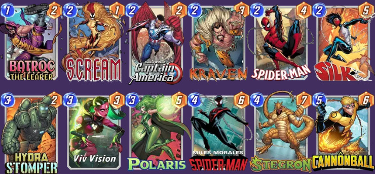 卡组核心:【跳跃者巴托克】【蜘蛛夫人】【二代美队】【克莱文】