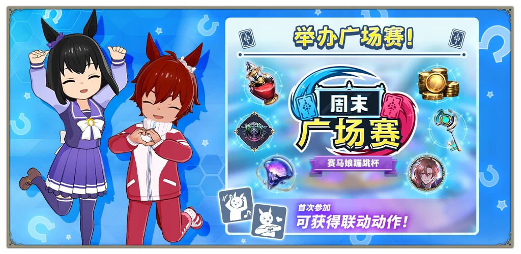 赛马娘迷你联动举办期间中,将举办广场赛“赛马娘蹦跳杯”!