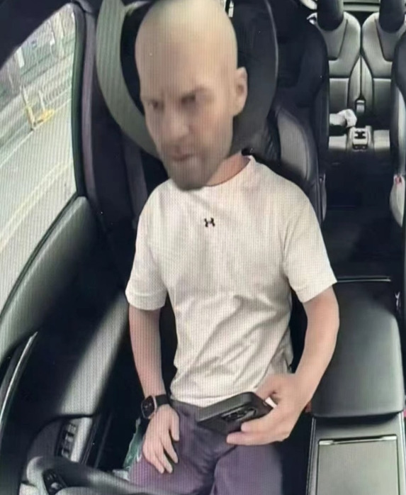 通过摄像头的景深反差效果,将睁着眼的模型人头与驾驶座上的司机身体组合,用来欺骗监测摄像头,代表司机一直未分心驾驶。
