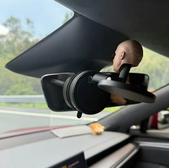 为躲避特斯拉FSD车内合规检测 车主在摄像头处放了一个模型人头