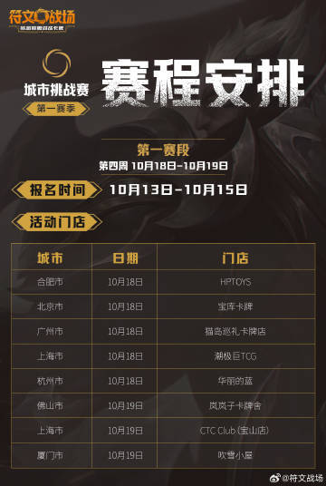 《符文战场:英雄联盟对战卡牌》城市挑战赛第一赛季第一赛段第四周赛程安排全面公开!