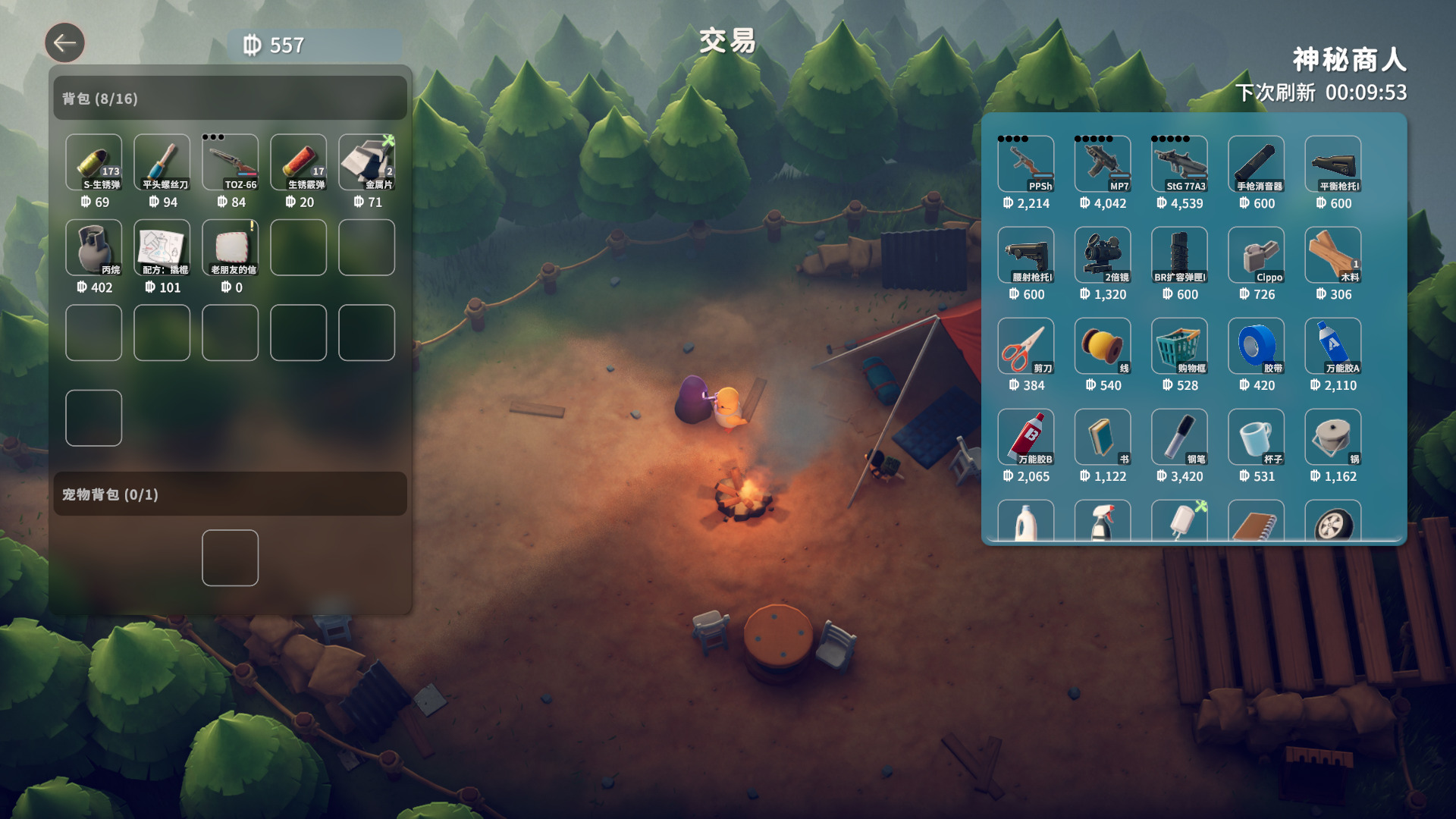 与传统的硬核射击游戏不同,《逃离鸭科夫》采用了俯视角操作,大大降低了操作门槛。控制鸭子从高处视角探索世界,战斗节奏明快,操作直观简单。枪战手感出人意料地流畅,点射操作简单易上手。这种设计让更多不擅长3D FPS的玩家也能享受“搜打撤”游戏的乐趣。