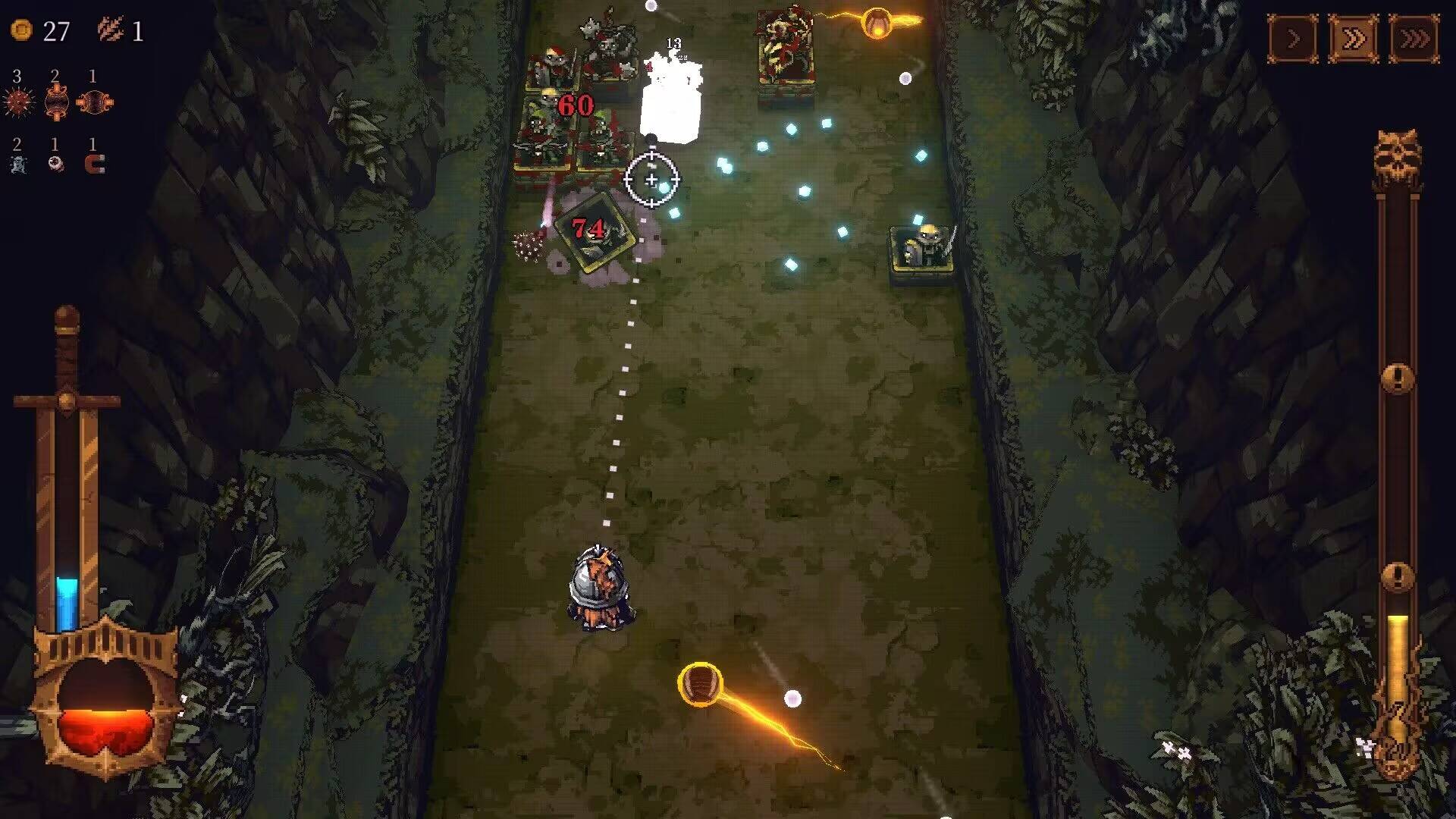 游戏将主要的难点都放在了前面的肉鸽发育上,后面的BOSS战反而并不怎么难,在前期如何利用有限的弹珠,先升级,进化,最后通过融合制造新的弹珠位置,敌人也是各有特点,喜欢远程攻击,正前方有护盾左右两侧比较薄弱。由很多只怪物叠在一起等等。