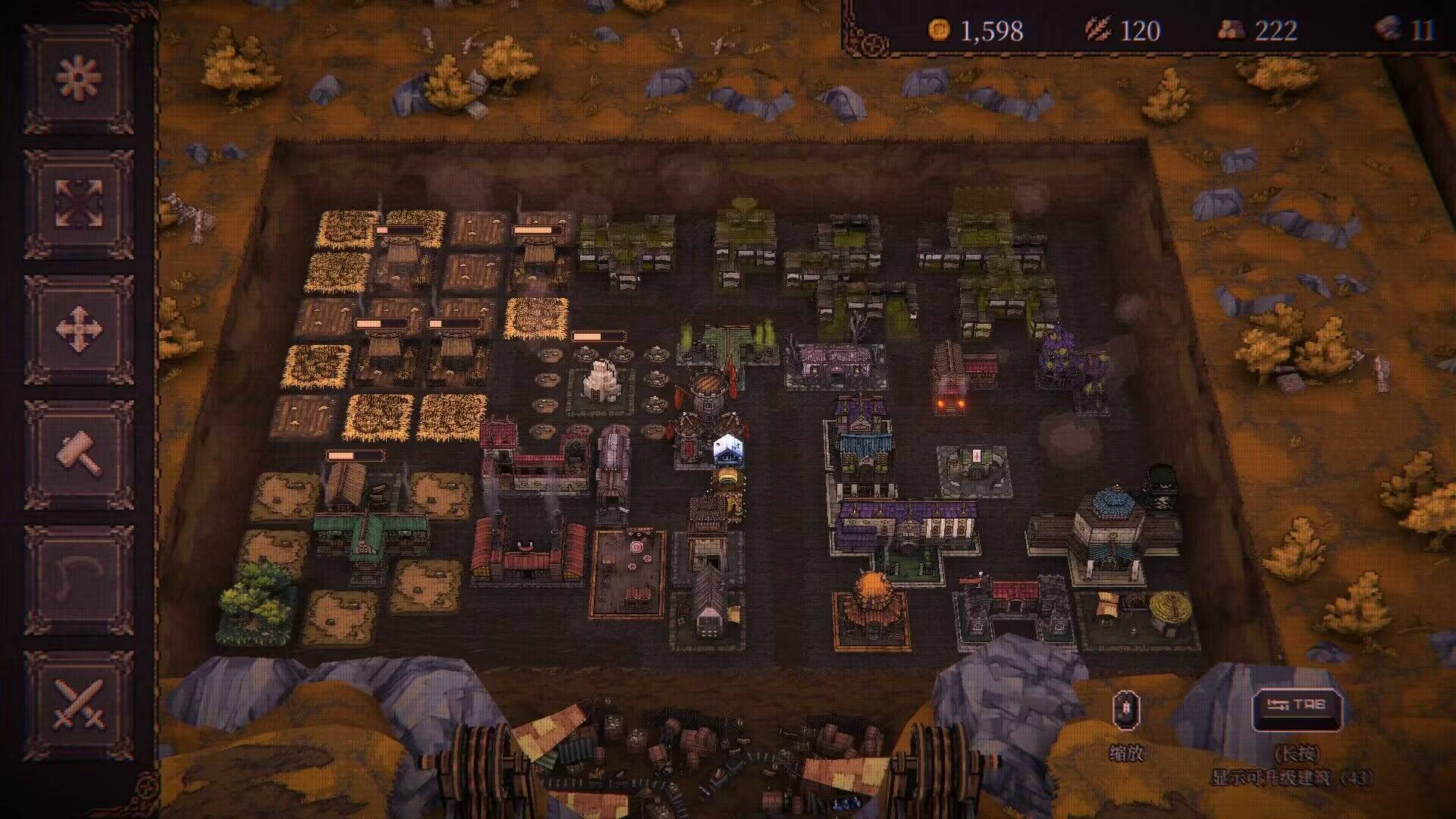 局外则是完全不同的经营建造玩法,花费金币扩张地盘来放下更多的建筑物。生成树木,石头,金币,稻草的经济建筑,为玩家提供属性加成的战事建筑,解锁新角色住宅的。还有可以提升采集次数,采集时间,资源互换的建筑。