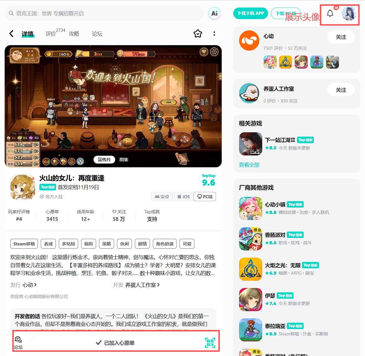 现在前往《火山的女儿》TapTap移动端页面:https://www.taptap.cn/app/732091?os=pc