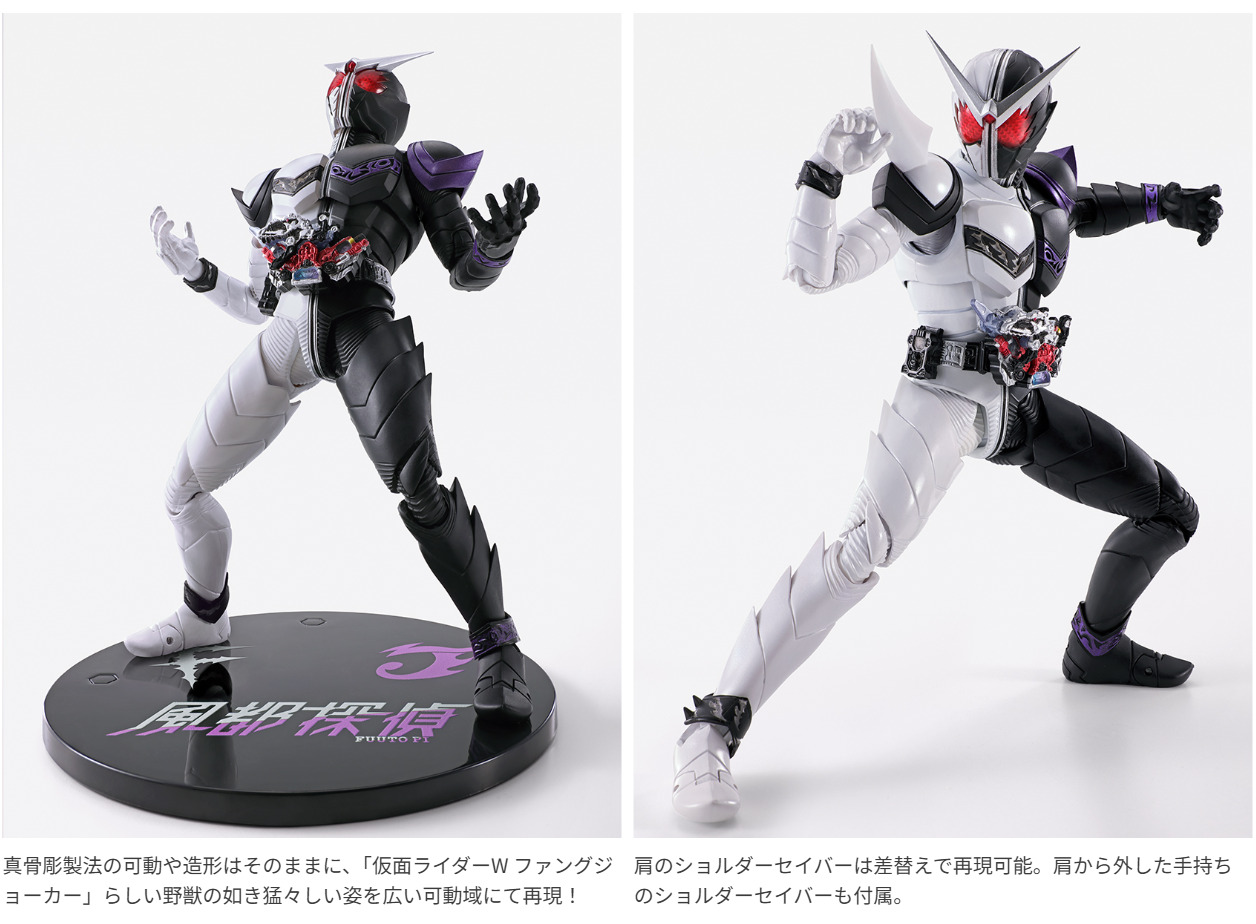 S.H.Figuarts 真骨彫製法シリーズより「仮面ライダーW ファングジョーカー」が新規のマキシマムセイバーエフェクトパーツと記念台座パーツ付属で『風都探偵』のアニメ化を記念して登場。