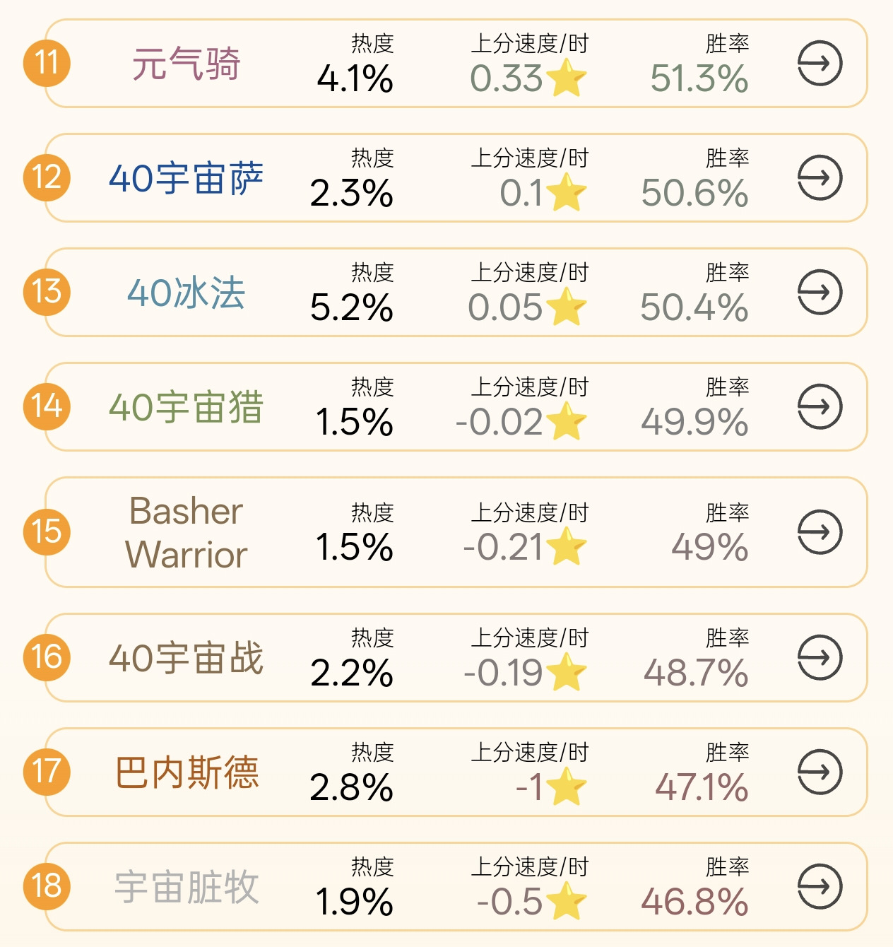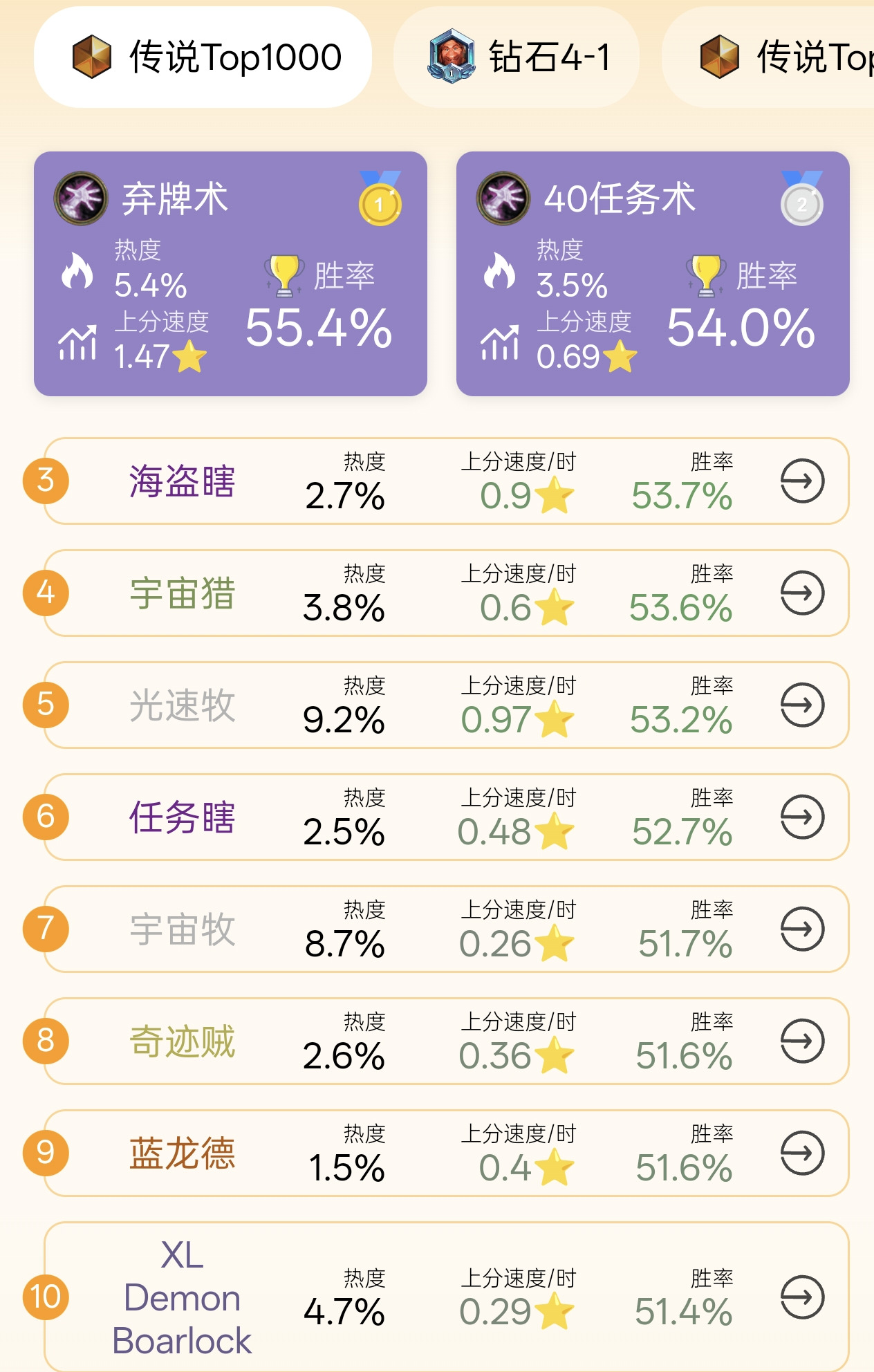 套牌排行榜——微信小程序卡牌大师(用的火石数据)