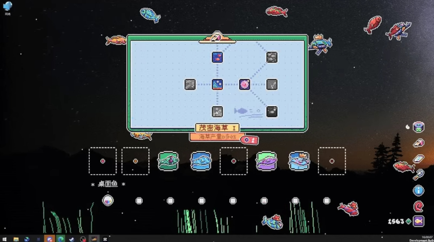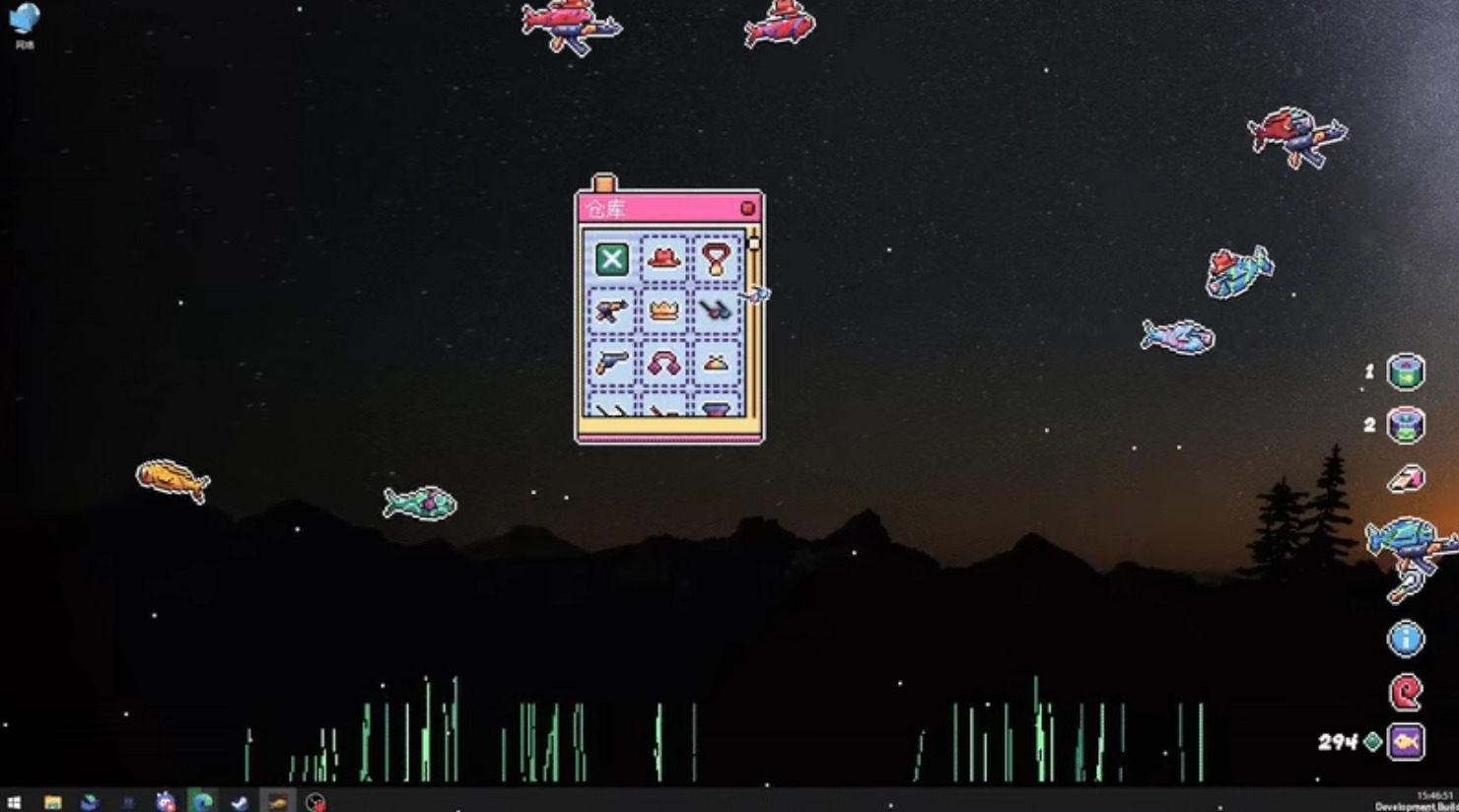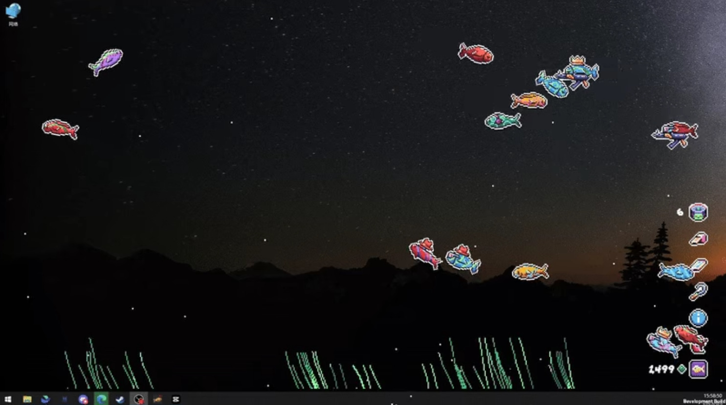 只是呆呆的鱼?非也。神秘触手卖家将不断为您提供鱼卵、修剪工具、太阳镜、武器、帽子……是的你没听错,在最可爱的像素风中,您可以将这些装饰物放在鱼的身上,它们或许会扛着AK47带着墨镜和小丑帽在您的桌面上撒野。未知的触手卖家到底是谁?扭曲空间出来的它似乎也没有恶意,或许只是一个也喜欢养鱼的异次元同好……请尽情享受极致的反差萌给您带来的视觉享受吧!