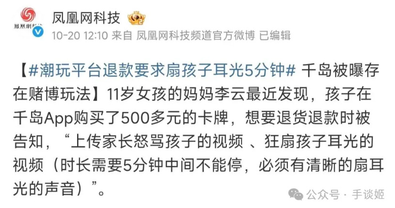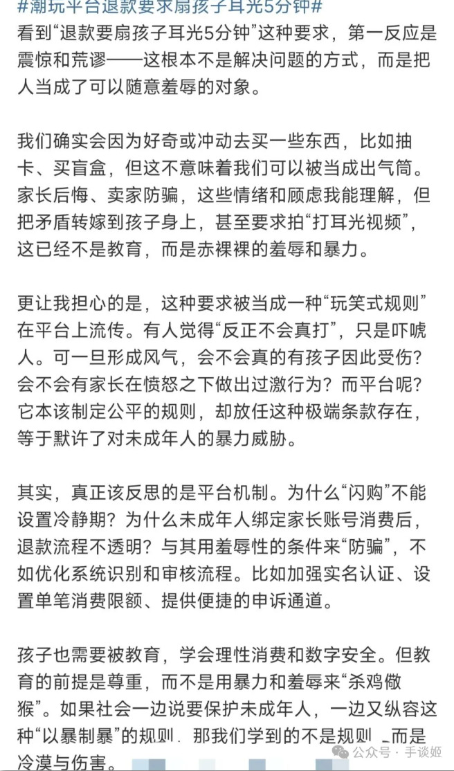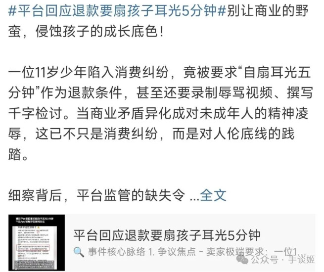 有温和派,自然也有武斗派,武斗派最出名的反制措施就是本次惨遭上纲上线的扇巴掌教育对策——你不是要求退款吗,可以啊,先把孩子教育一顿再聊退款的事情吧?
