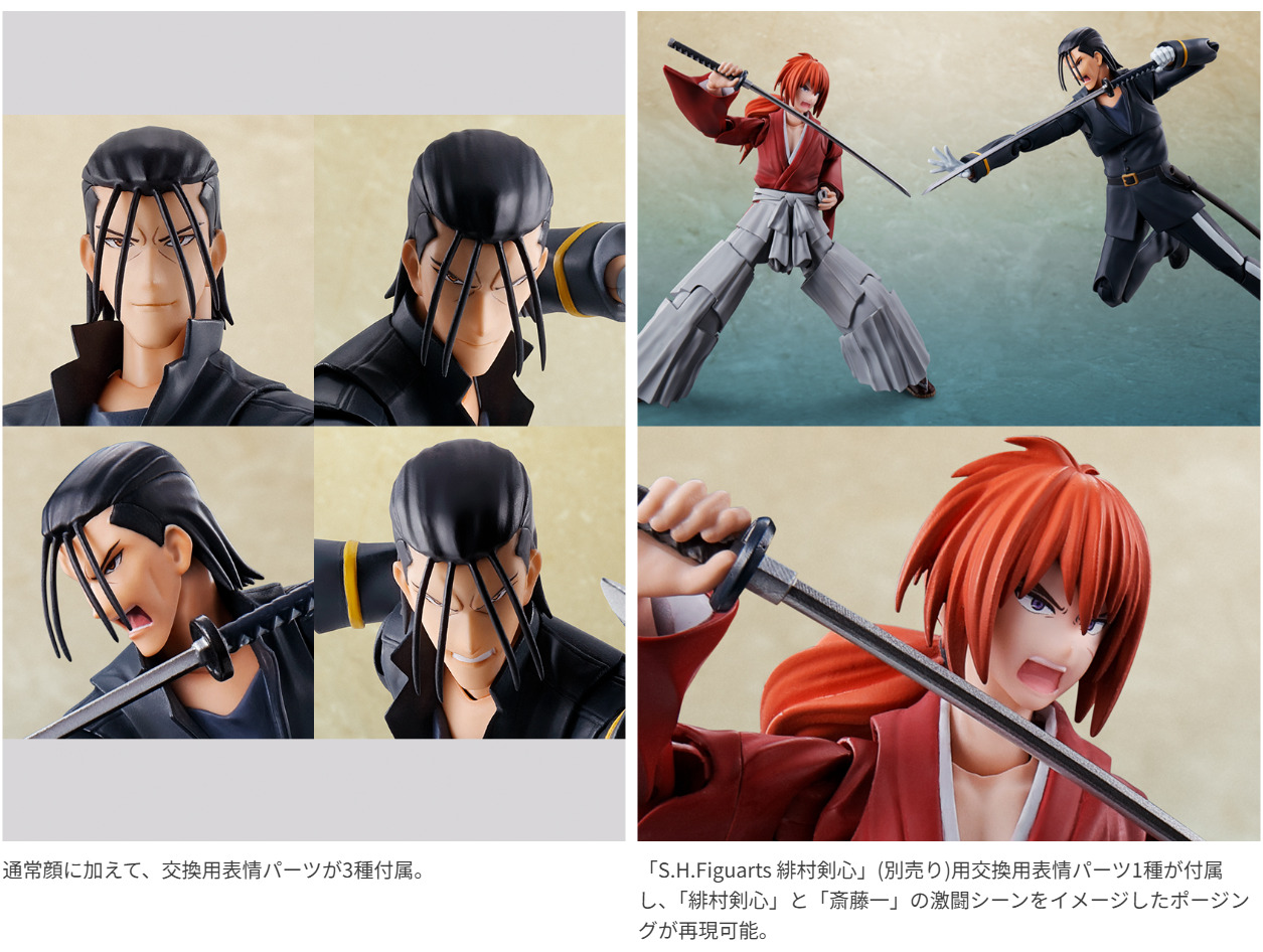 原作者・和月伸宏先生による監修の下、立体化!交換パーツなど豊富に付属し、パーツを組み合わせることで様々なポージングが再現可能。「S.H.Figuarts 緋村剣心」(別売り)と組み合わせて飾ることで世界観が広がる!