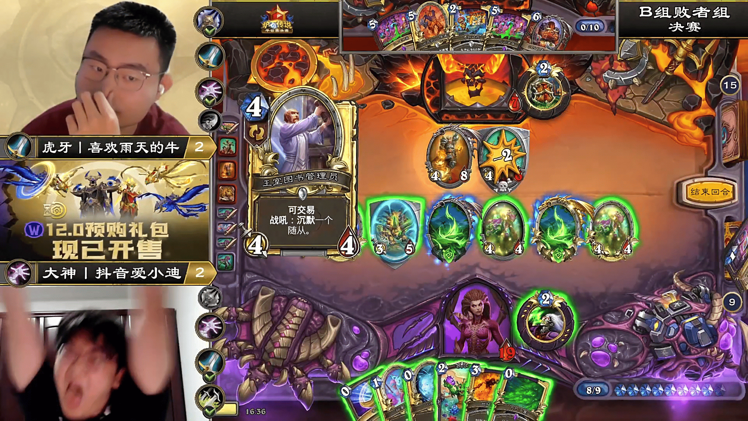 当然,年轻人嗨归嗨,爱小迪竟然在八进四+决胜局+斩杀回合的最最关键时刻嗨爆手滑,上演了王室图书管理员出牌变交易(后又找回)的顶级剧情……不愧是年轻人,也确实是做主播的料。