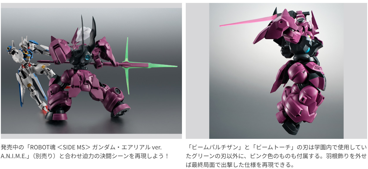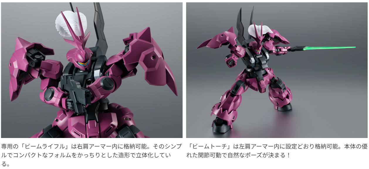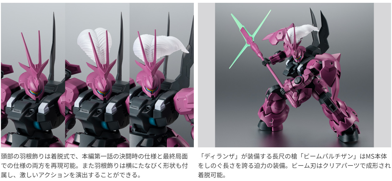ROBOT魂 ver. A.N.I.M.E.の機構をベースにし、可動と劇中再現に特化した「ディランザ グエル専用機」が登場。本編第一話と最終局面に登場した両方のシーンを再現可能。