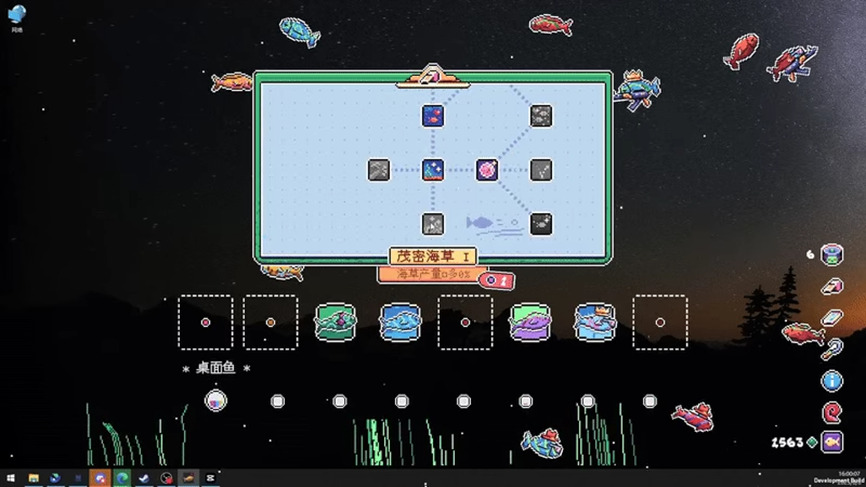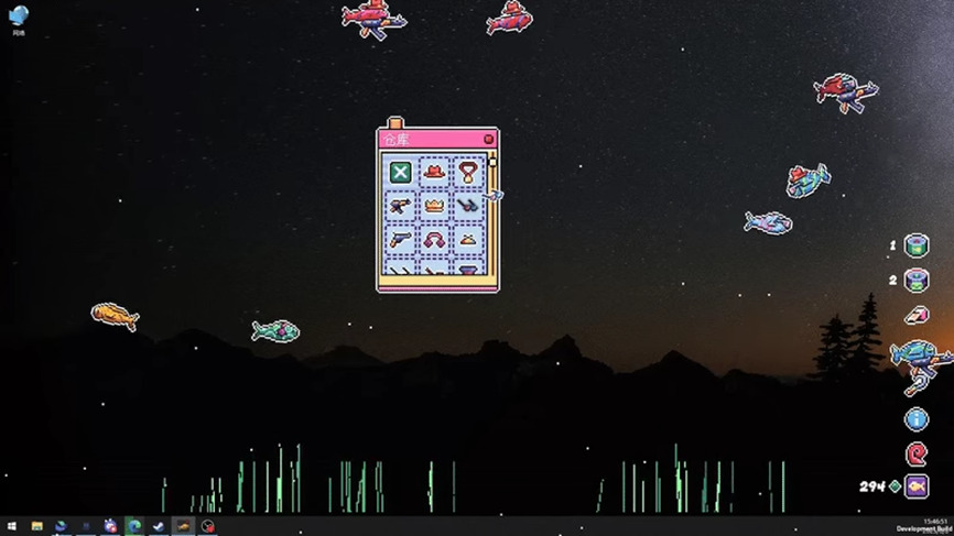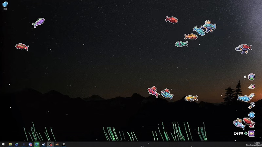 只是呆呆的鱼?非也。神秘触手卖家将不断为您提供鱼卵、修剪工具、太阳镜、武器、帽子……是的你没听错,在最可爱的像素风中,您可以将这些装饰物放在鱼的身上,它们或许会扛着AK47带着墨镜和小丑帽在您的桌面上撒野。未知的触手卖家到底是谁?扭曲空间出来的它似乎也没有恶意,或许只是一个也喜欢养鱼的异次元同好……请尽情享受极致的反差萌给您带来的视觉享受吧!