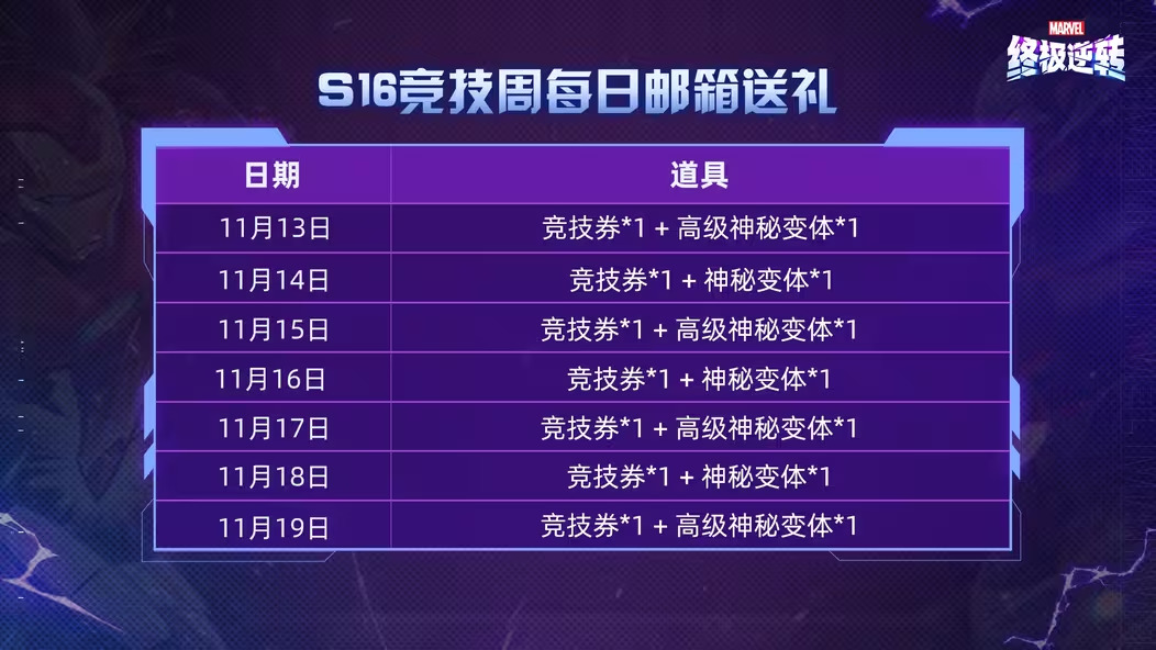 铁盒宣布,各位期待已久的竞技福利周它又回来了! 11月13日-11月19日,登录游戏即可领取竞技场门票、神秘变体、高级神秘变体奖励! 具体奖励请看下图~ 除此之外,疯卡星期四再度来袭,本周为大家带来的是[眼镜蛇]基础卡 [2/3] 激活:将此区域对手1张生成的卡牌换边到你这一侧。 动动手指每天上线即可领取以上福利,各位可千万不要错过这次薅羊毛的机会啊!