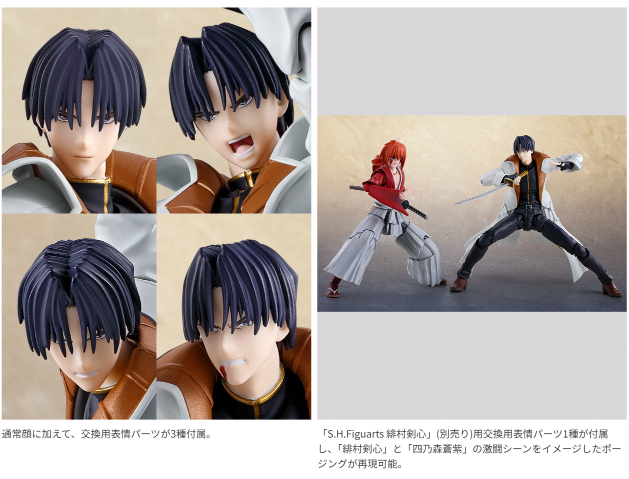 原作者・和月伸宏先生による監修の下、立体化!交換パーツなど豊富に付属し、パーツを組み合わせることで様々なポージングが再現可能。「S.H.Figuarts 緋村剣心」(別売り)と組み合わせて飾ることで世界観が広がる!