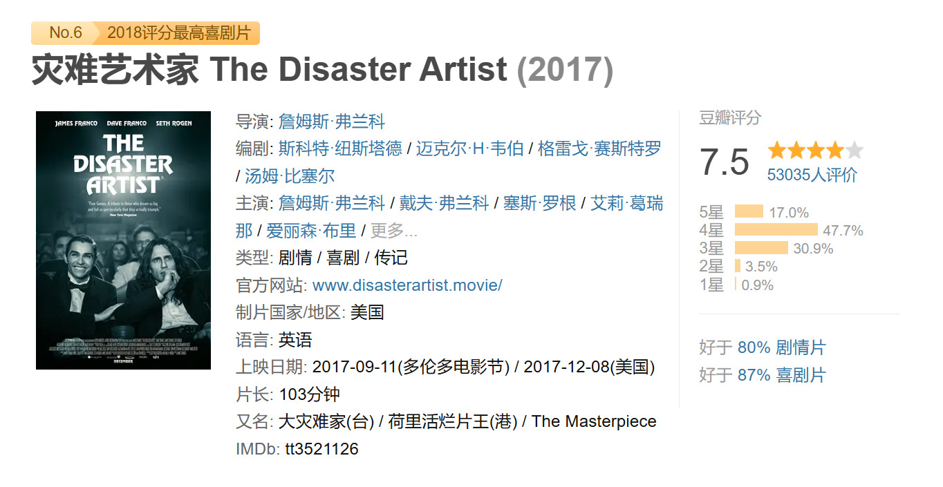 2013年,参演《房间》的演员之一格雷·戈泽斯特洛和汤姆·比塞尔联合出版了《灾难艺术家》以回顾该片的拍摄过程,受到这本书的启发,2017年,詹姆斯·弗兰科拍摄的《灾难艺术家》上映了,这部讲述烂片故事的电影却出人意料地成为了一部“好片”,一经上映便斩获多项大奖,甚至在国内也获得了观众们不低的评分。