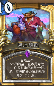 海上船歌也是能被寿司和佳酿同时减费的卡牌,他配合游客的铺场或者重拳的斩杀(圣骑士的斩杀)都有不错的效果。尤其是斩杀,当你问我为什么不玩圣契骑时,这就是答案。