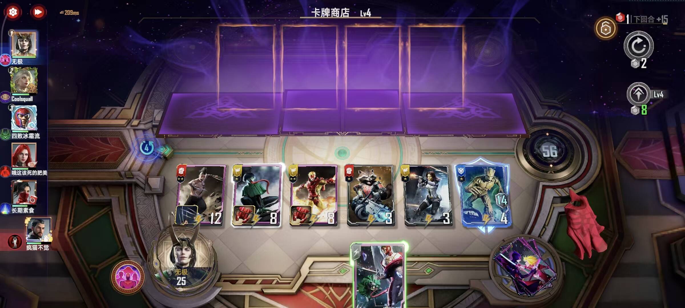 一回合看运气,我是普锁,如果全是锁定卡且没有炸弹人我就直接升三不买卡,有非锁定就买,三回合升四,比较冒险,因为我想要万磁王技能兄弟会集结,出这技能必有蟾蜍,就算没这技能也要升四找蟾蜍,没血魔过度什么的,我这卡不全只能冒险,没有其他过度是这样的,只能吃本家强度,吃不到那就输,磁场控制这卡除非没一点余地马上就出局,不然没蟾蜍最好别买,钱不多的情况下切记先用磁场控制再打出万磁王(我有过先打万磁王然后钱不够买2块的磁场控制,又不能没有装备,只能使用手中的磁场控制,然后成功把俩块的磁场控制替换成头盔了)。