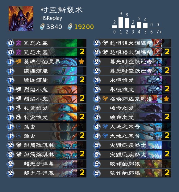 凭借优质的buff牌【续连熵能】,优质低费站场怪【暮光时空跃迁者】以及优质高伤法术牌【超光子弹幕】的加入,时空撕裂术码速拉满,经常5/6费就能压死对面。