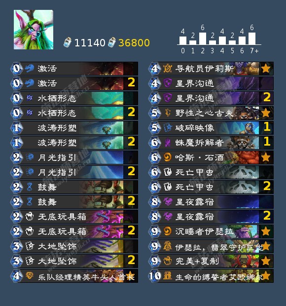 如果卡组有乐队经理精英牛头人酋长 或 奇利亚斯豪华版3000型 ,则详细卡图底下会显示相应的卡。