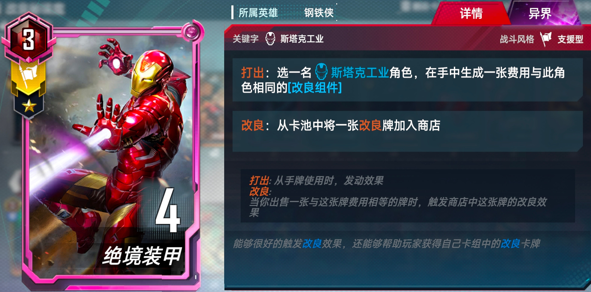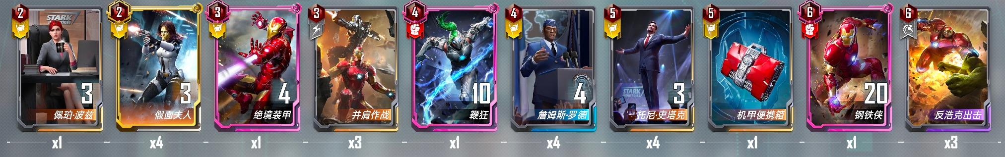 3费:并肩回手(可换锁定托尼),随缘带就行,异界绝境装甲×1(核心)