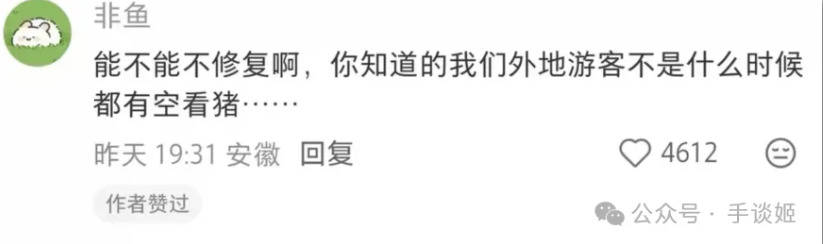 后来有人奇怪扬州为何莫名多了只猪,驻足观看,得知情况后表示——要笑死了。