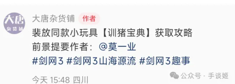 《剑网三》里面经常会有一些让人忍俊不禁的挂件和玩具,其中训猪宝典就是其中之一,有了这个宝典以后,就可以让角色骑猪了。