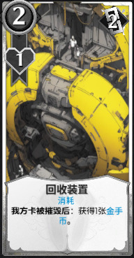 回收装置:没升级前2补给太贵了,而且还是消耗牌,不太好用。
