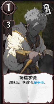 铸造学徒:在升级后由退场效果改为进场,才能在作为防御卡的同时,稳定获取1金手币,有一点鸡肋。