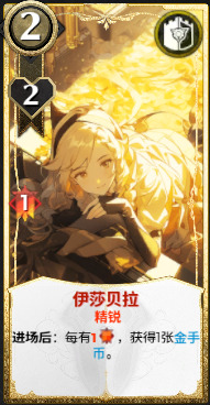 伊莎贝拉:能作为引擎弄出打不完的金手币,但要多开一个战略调度卡池,厉害但是稀有度和卡池污染影响成型速度让笔者放弃了这条思路。