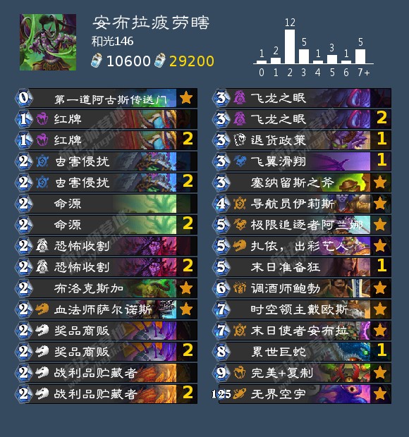 1.提前复制命源,可以一回合直接打出3命源+阿兰娜+戴神+安布拉,共八费。