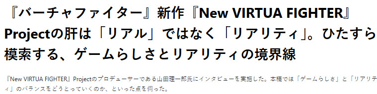 山田理一郎表示,经典《VR战士》究竟是什么游戏一言难以蔽之,我们认为游戏重启前首先要明确必须遵守的制作规则。