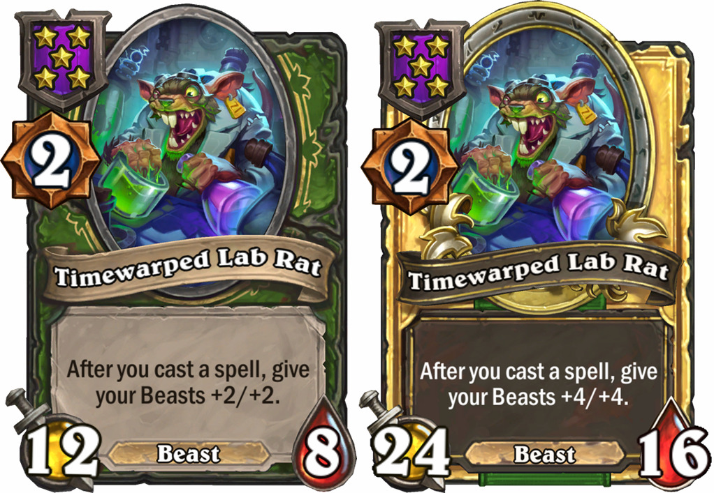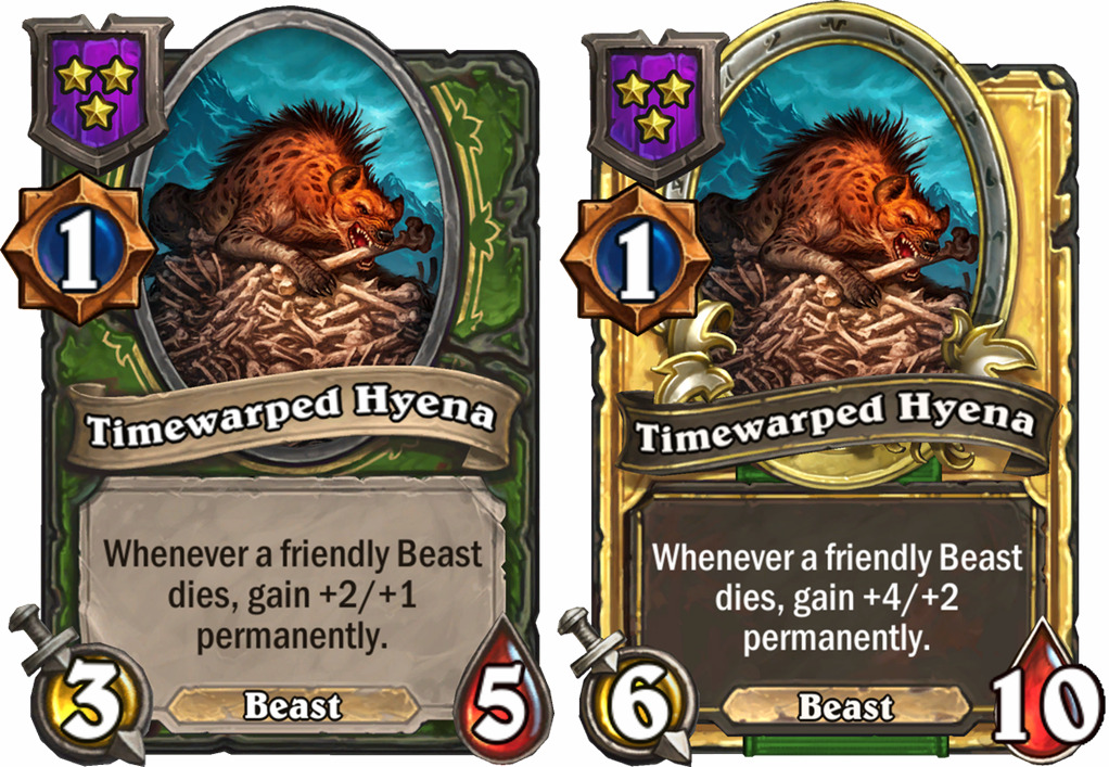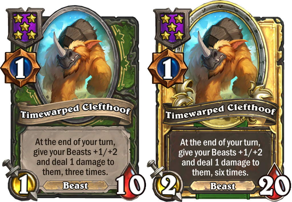 - [1费1/1野兽] 每当第三只友方时空扭曲野猪死亡时,随机获取一张金色野兽牌。(还剩3只!)