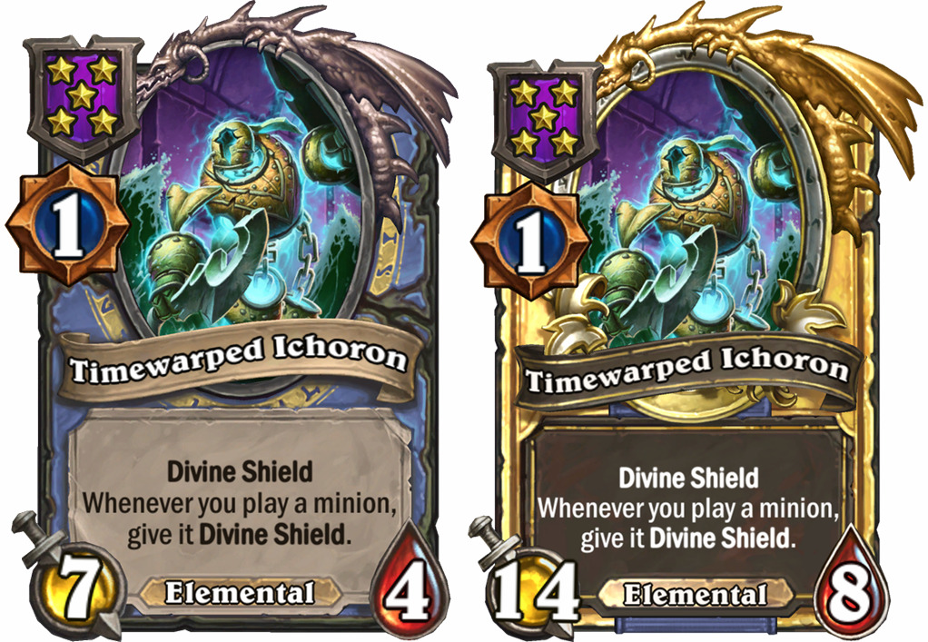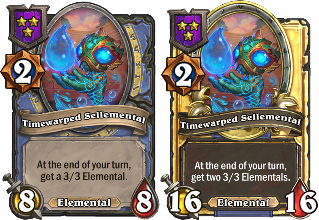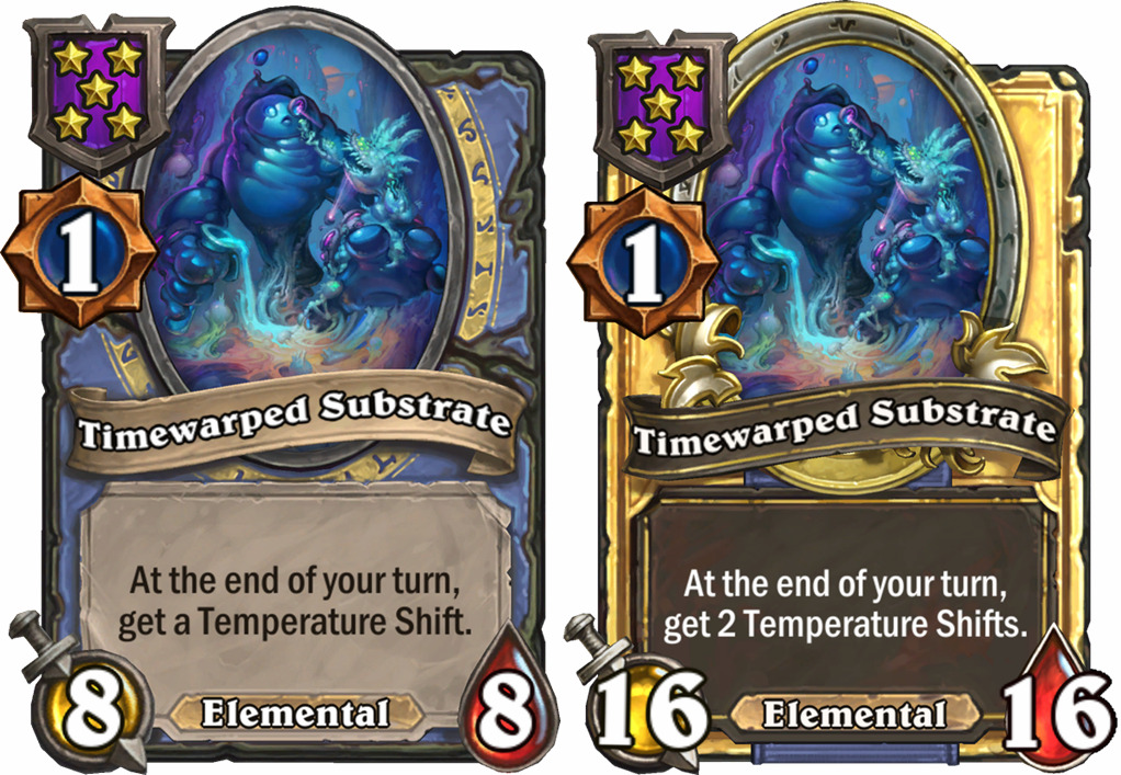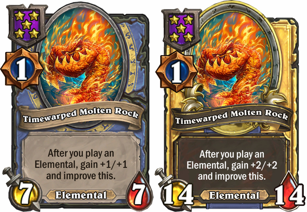 - [2费10/10] 在你使用一张元素牌后,使酒馆中的随从在本局对战中获得+3/+2。