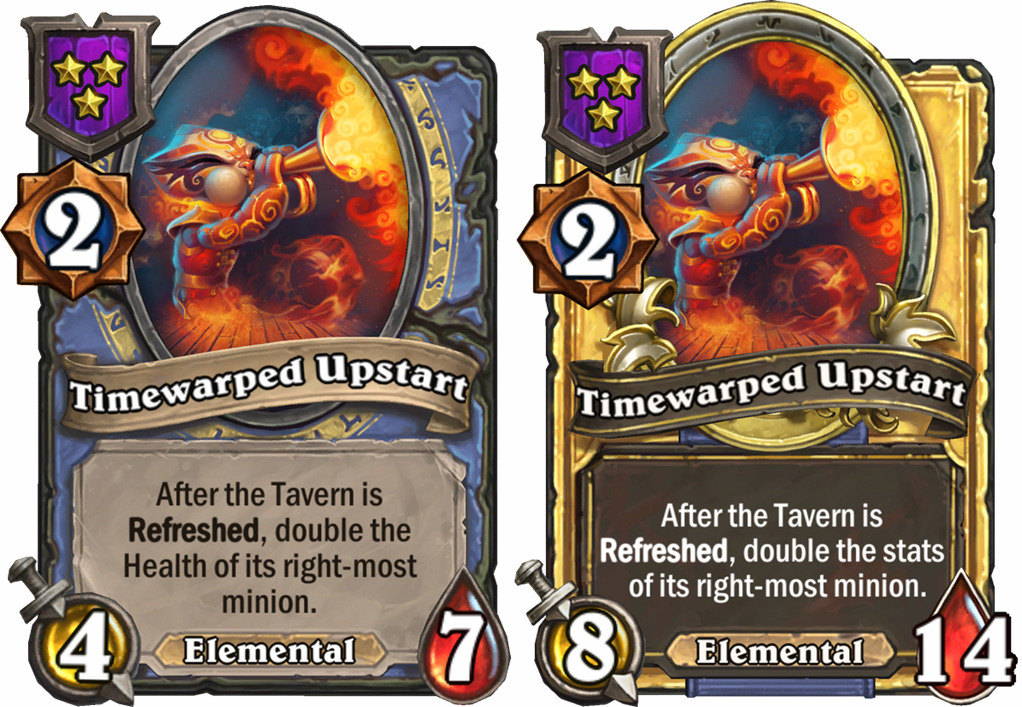- [2费4/7元素] 在酒馆刷新后,使其中最右边的随从生命值翻倍。