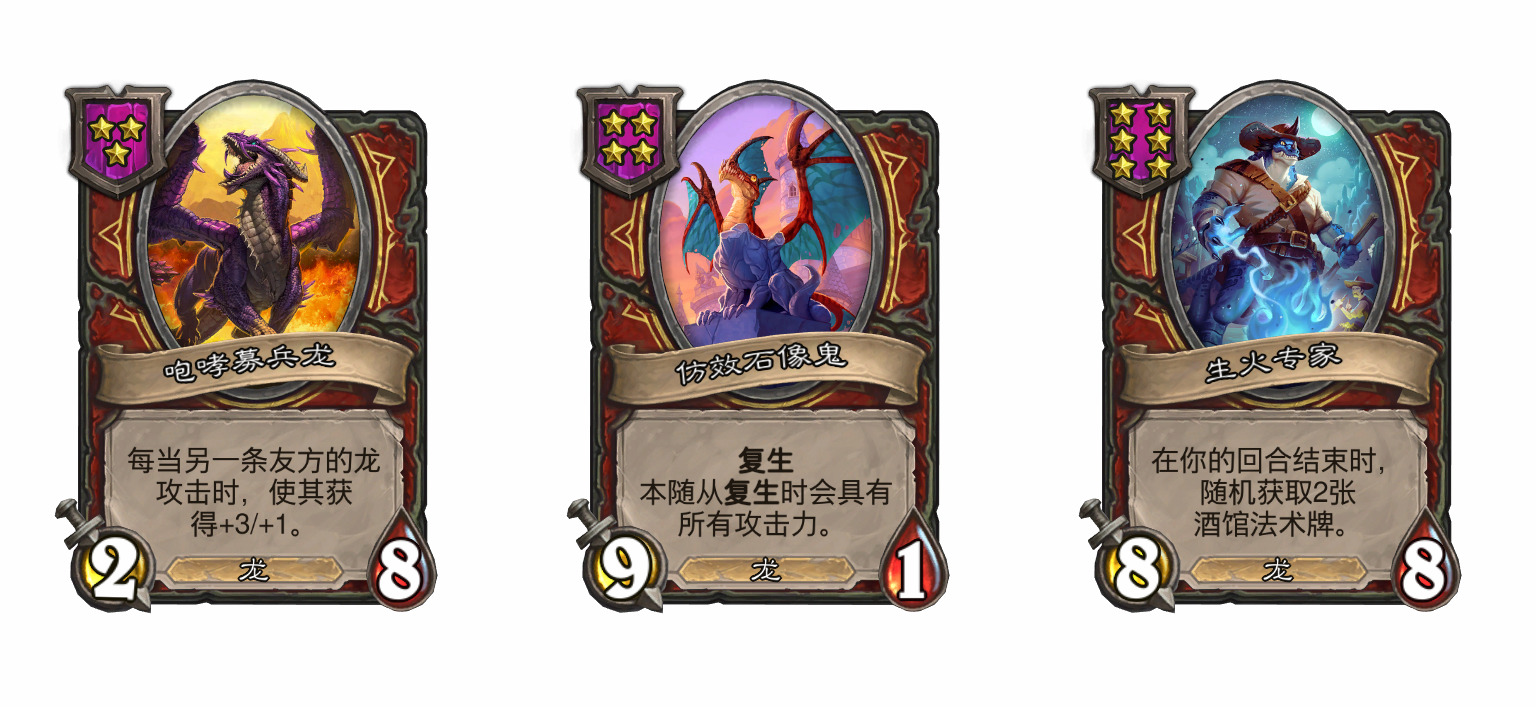 - [2星1/3龙] 进击:召唤一条3/3的雏龙,并使其率先攻击目标。