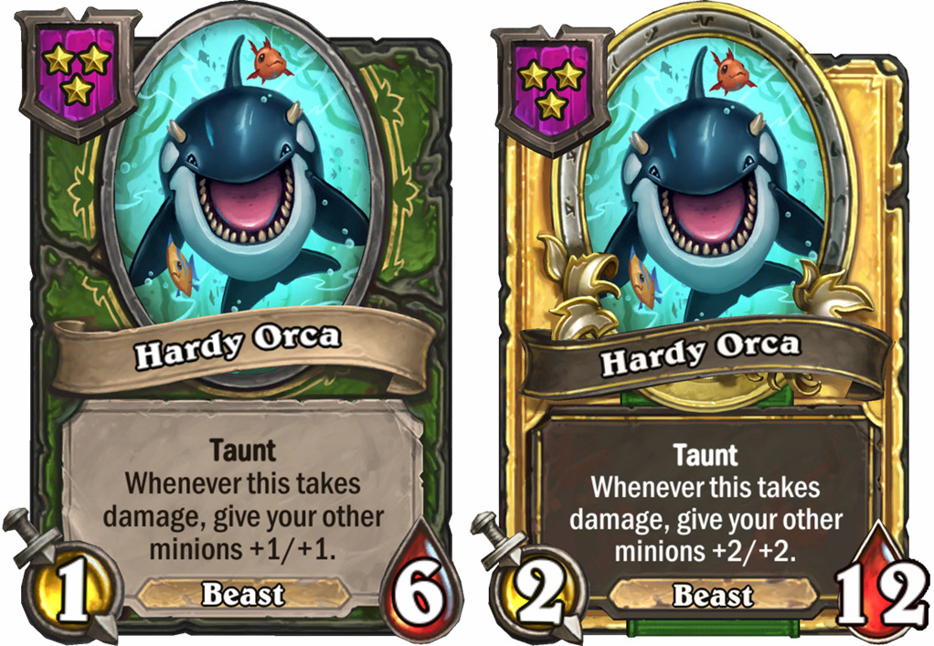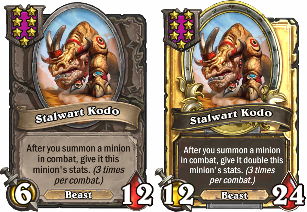 - [7星6/12野兽] 在战斗中,在你召唤一个随从后,使其获得本随从的属性值。(每场战斗限3次。)