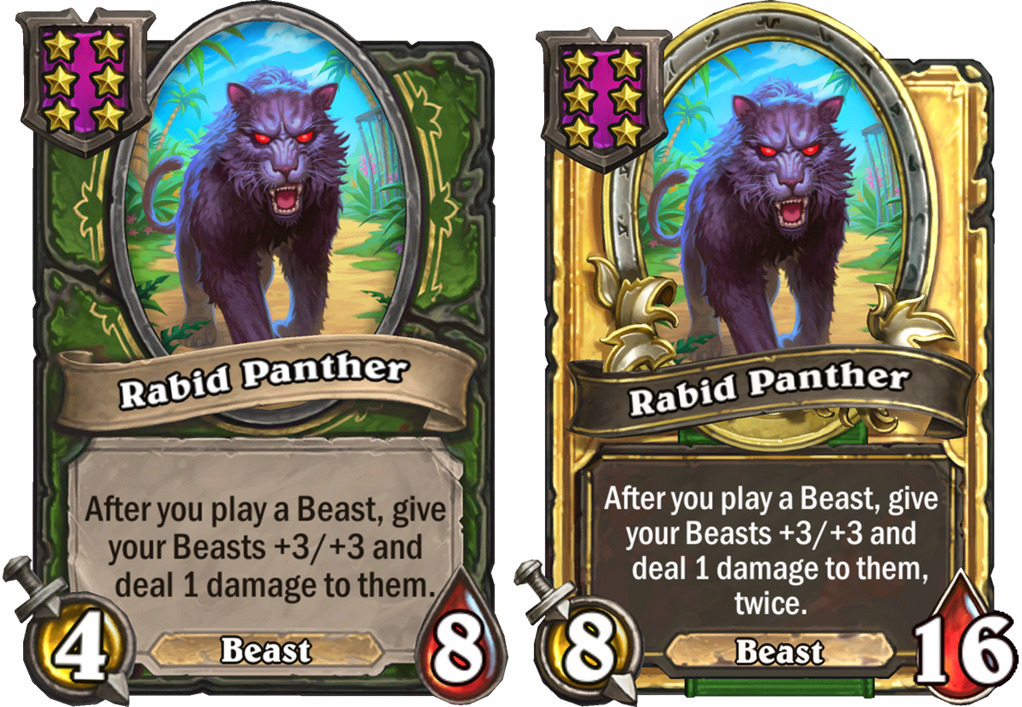 - 新:[4星1/4] 亡语:随机召唤一个野兽,其属性值变为8/8。