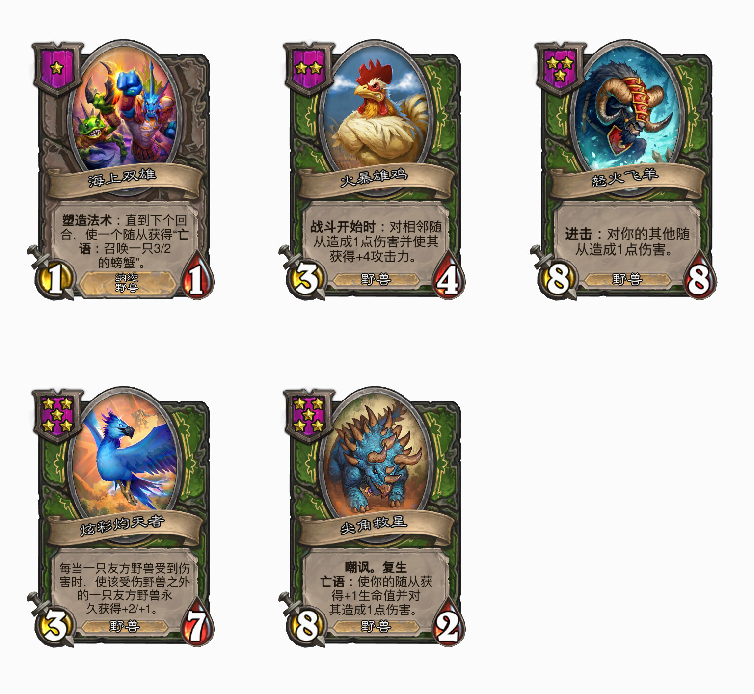 - 新:[5星] 亡语:召唤等级2,3和4的随机野兽各一只。