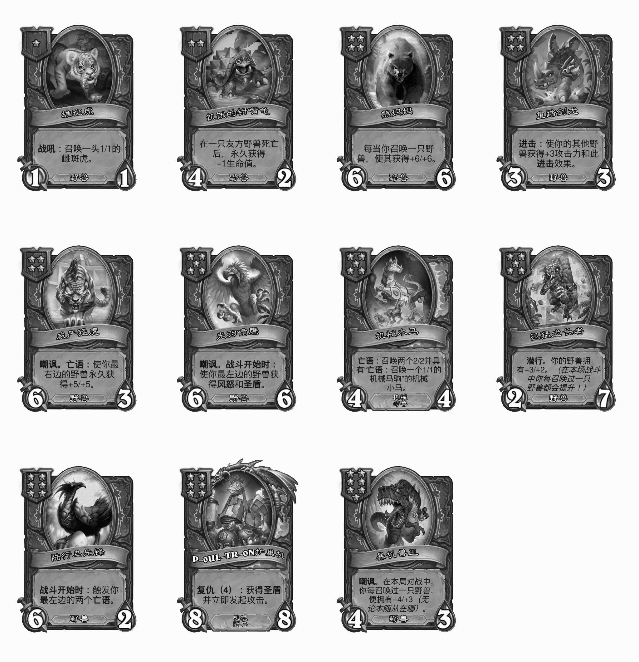 - 旧:[6星] 亡语:召唤等级3,4和5的随机野兽各一只。