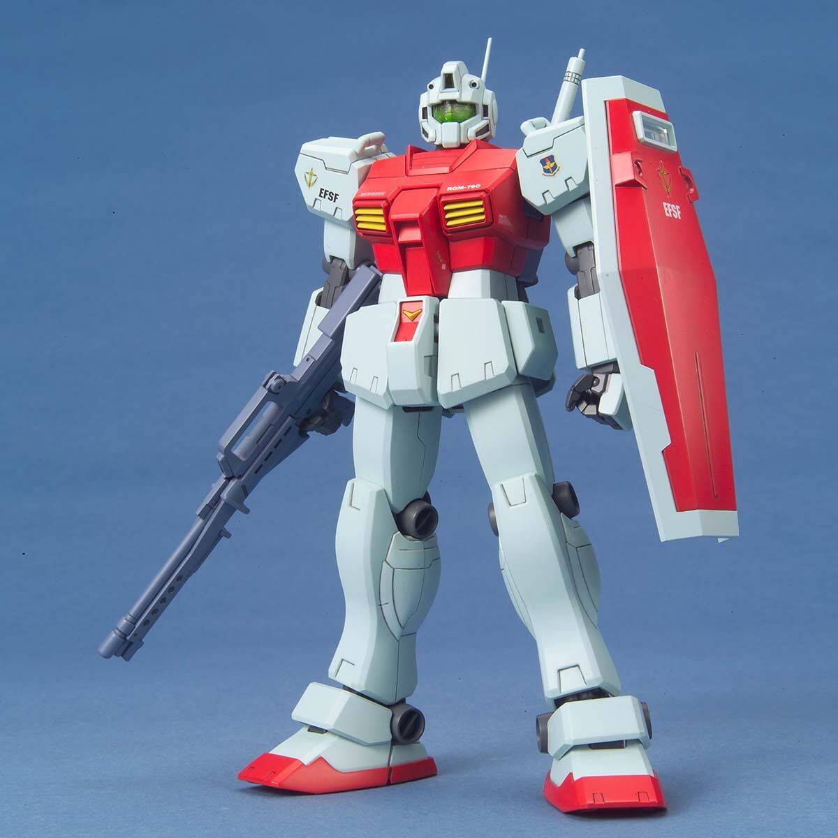 「機動戦士ガンダム0083 スターダストメモリー」に登場するジム改のスタンダードカラーバージョンが1/100スケールMG仕様でモデル化。足部には内部フレームを再現。ヒザの裏を通る動力パイプにはメッシュパイプを用いるなど、細部にまでこだわり再現されています。胴体内部には、緻密なメカニクスを再現されたコクピットブロックが収納可能です。マーキングシールやガンダムデカールなどを使用する事で、洗練されたディティールの機体を再現できます。武器の90mmマシンガンは、パーツを組み替える事で、ジムライフル、ロングライフルが再現できます。それ以外にも、ビームスプレーガン、ビームサーベルが2本、裏に収納できるシールドが付いています。