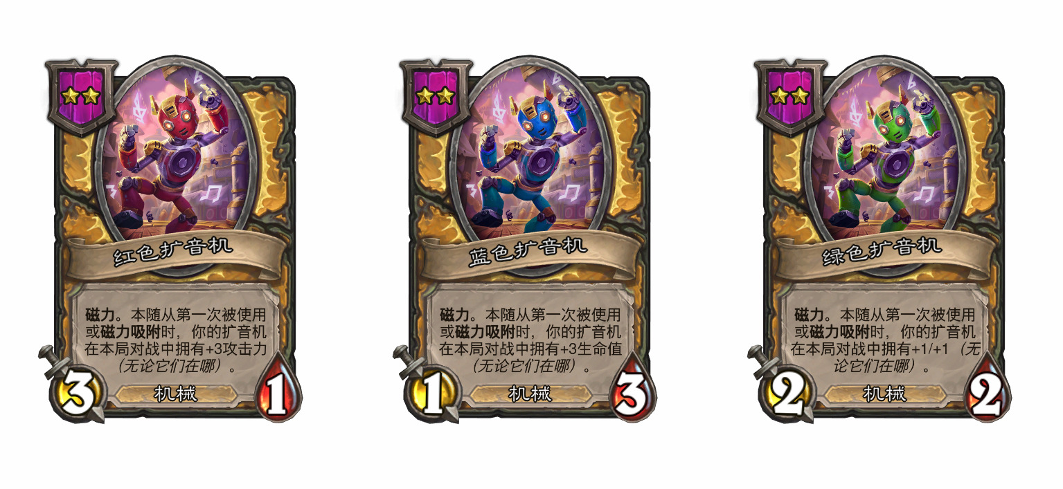 和之前的奇利亚斯系列一样,扩音机系列卡牌也是加起来共享2个随从的份数。(当然了,2/5和2/3也算不一样)