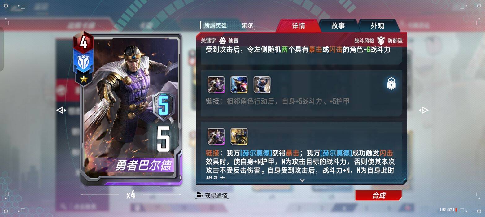 玩法思路以绝境罗德过渡为主,并辅以小洛基链接,这里不再赘述。谈一谈最理想状态下卡组完全体怎么运行:常规下阵容成型后几乎很难抢到先手,天马变成装备,装配到瓦尔基里,巴尔德(尽量带装备后续优先让天马保赫尔莫德)挨打加战力,新索带斧子放一号位,挥斧自爆给全体加战力加护甲给赫尔莫德上天马,续上了巴尔德的坚甲,之后巴尔德再次挨打加战力,赫尔莫德行动再续巴尔德坚甲,巴尔德再次挨打加战力(两人位置可根据情况调换但新索要在瓦尔基里行动前爆掉),之后瓦尔基里再次召唤新索自爆,给自己上天马给巴尔德续坚甲,巴尔德再次挨打,此时巴尔德挨了4下,身材很可观,巴尔德行动后坚甲没破,循环如上反复续坚甲流程,如果破了下次受到攻击没被摧毁,赫尔莫德行动续坚甲循环仍然继续,如果阵亡了赫尔莫德再次召唤巴尔德,巴尔德立刻行动,之后瓦尔基里再动又召唤巴尔德.....