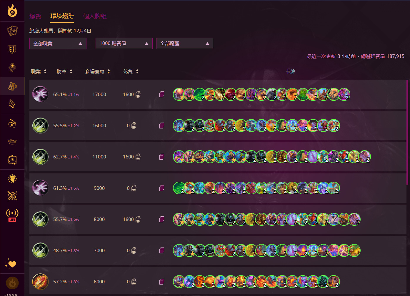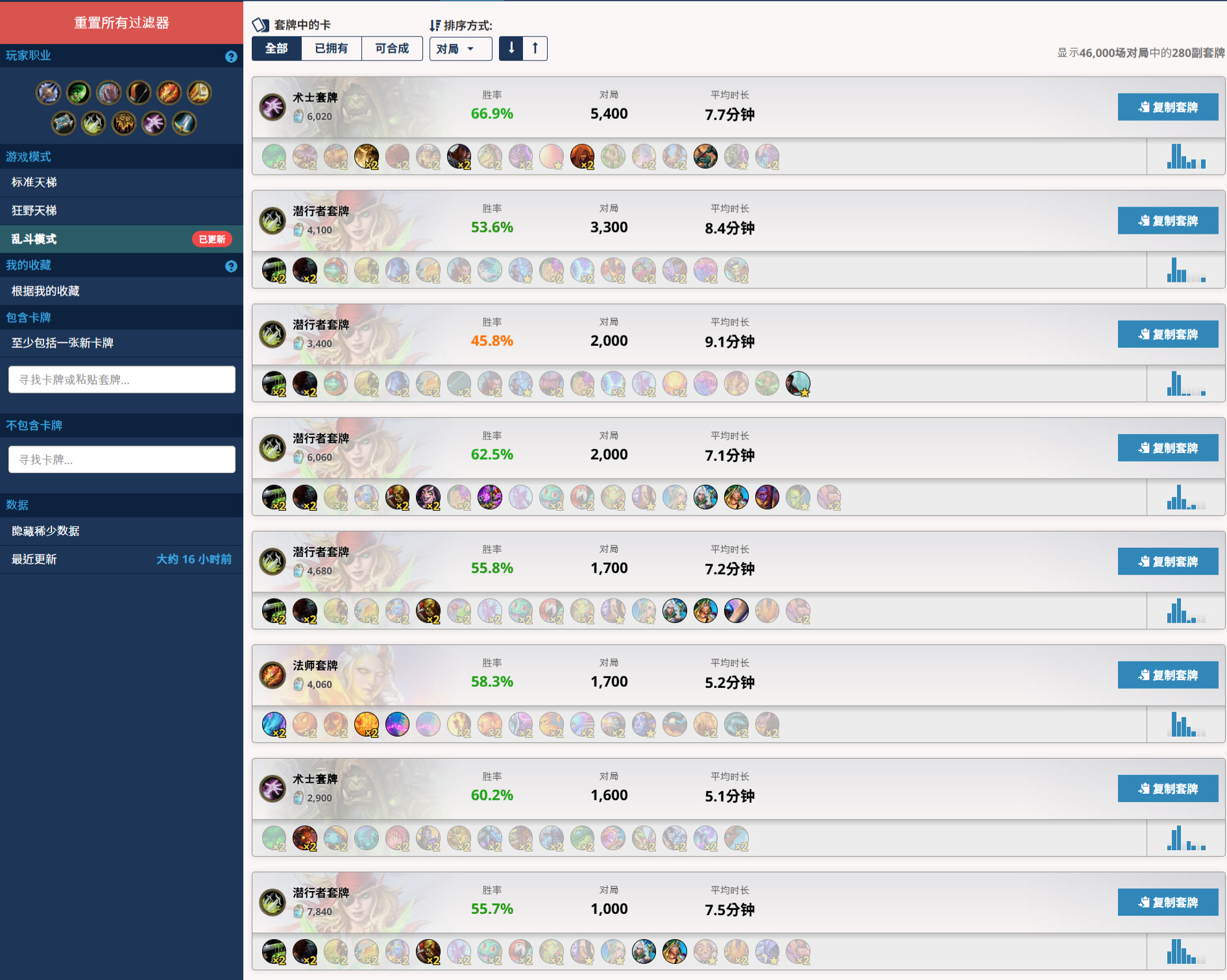 (有部份卡组因数据不够亮眼 故未在下面列出)