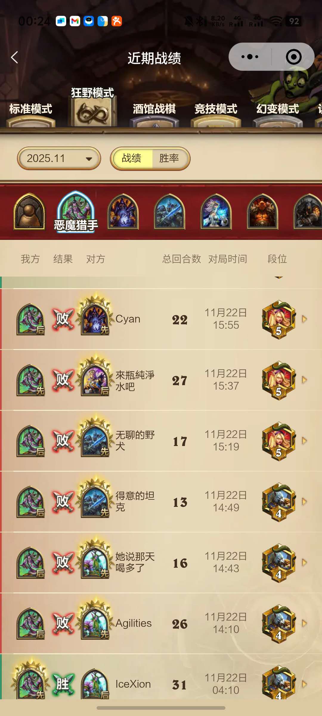 后来卡组研发成功,相对稳定了: