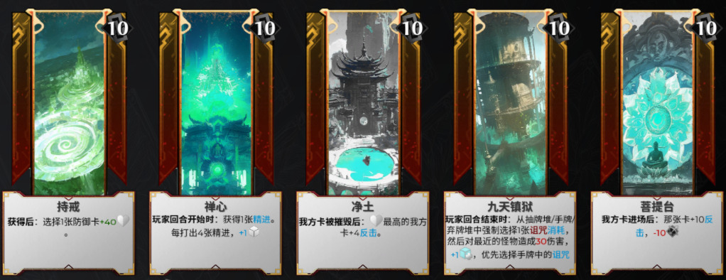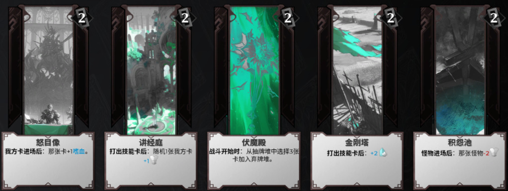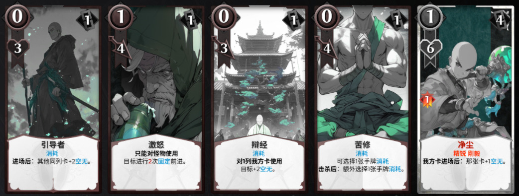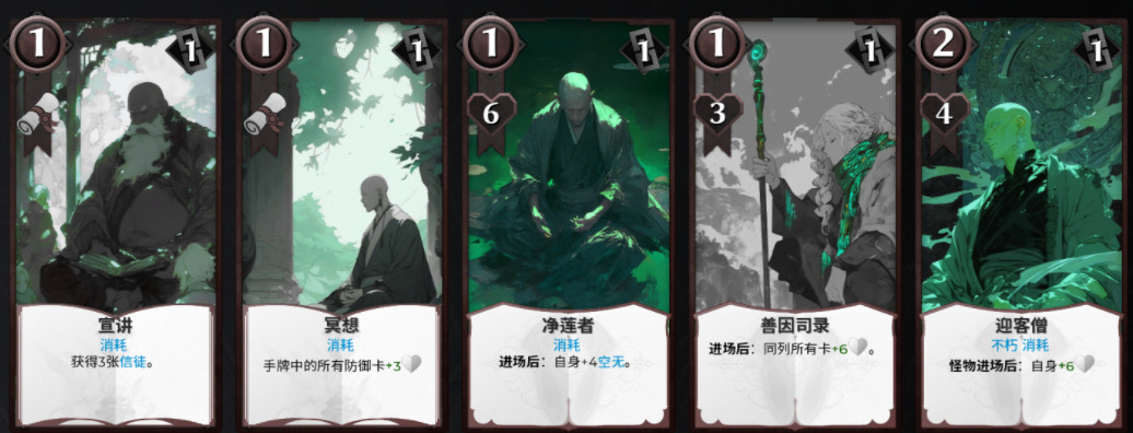 - 迎客僧:怪物进场后,自身+6血量,携带不朽(携带者不会随时间退场)和消耗。